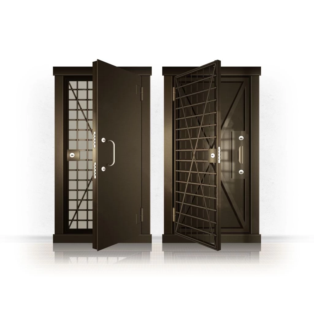 Металлические двери КХО и КХН представляют собой входные блоки, обладающие высоким уровнем взломостойкости и состоят из трех основных элементов: усиленного каркаса, сплошного металлического полотна и решетчатой двери. Дверной блок изготавливается из стального уголка 100*100 мм. Места крепления блока к стене цементируются и закрываются стальными наличниками шириной 40 мм. Крепеж заходит вглубь стены на 80 мм. В конструкции внешней створки монтируются ребра жесткости, для обшивки используется сталь толщиной не менее 3 мм. Внутренняя решетка изготавливается из прутка диаметром 16 мм. Размер ячеек решетки должен составлять не более 15 на 15 см. В точках пересечения прутья надежно приваривают друг к другу. В КХО и КХН необходимо поддерживать определенную температуру и влажность. Для этого внутреннее пространство глухой двери заполняется теплоизоляционным материалом, а по периметру двери приклеивается уплотнитель. Такие двери оборудуются замками с повышенным уровнем взломостойкости. Специализированные двери КХО и КХН в Невеле могут быть оснащены сигнализацией, в конструкции могут быть проушины для навесного замка и элементами для опечатывания. Если идет речь о двери в комнату хранения оружия, в створке оборудуется окно для выдачи оружия и спец. средств, которое накрывается стальной дверцей.